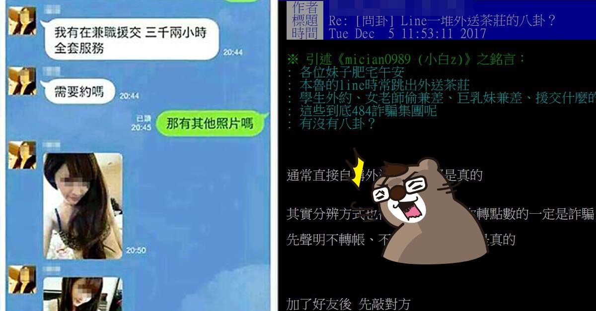 - 前一陣子Line開放人家加好友,結果三不五時就會跳出外送茶妹邀請…不禁讓人好奇到底怎麼知道我Line的啦!不過如果是男人,一定很想知道,到底可不可以衝…網上正好有一位專業茶魚王出面解惑,讓人長知識啦!
